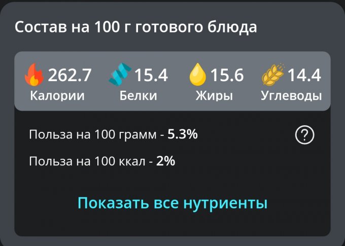 | Кол-во | Калории | Белки | Жиры | Углеводы | |