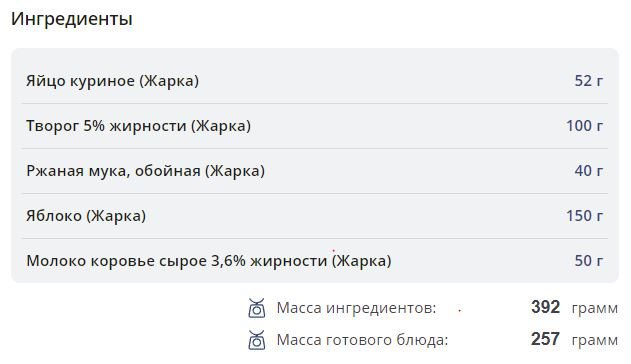| Кол-во | Калории | Белки | Жиры | Углеводы | |