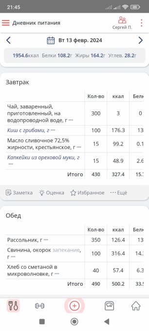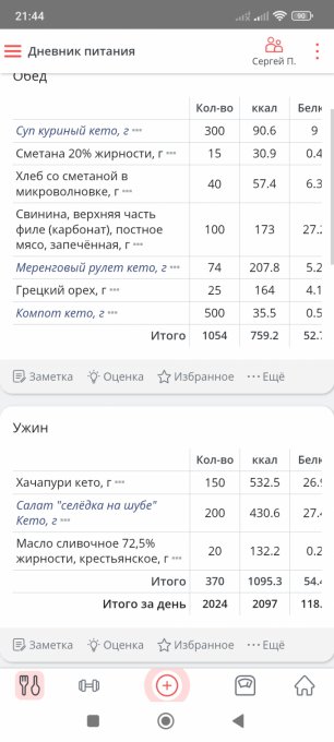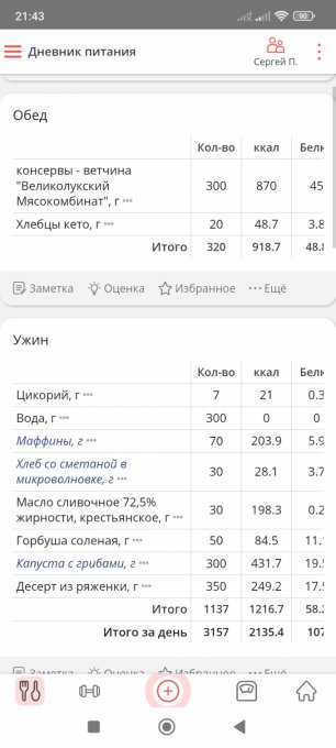 | Итого за день | 2365 | 1560 | 81 | 104 | 68 |