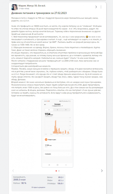 Мария. Минус 50. Ем всё. написал: