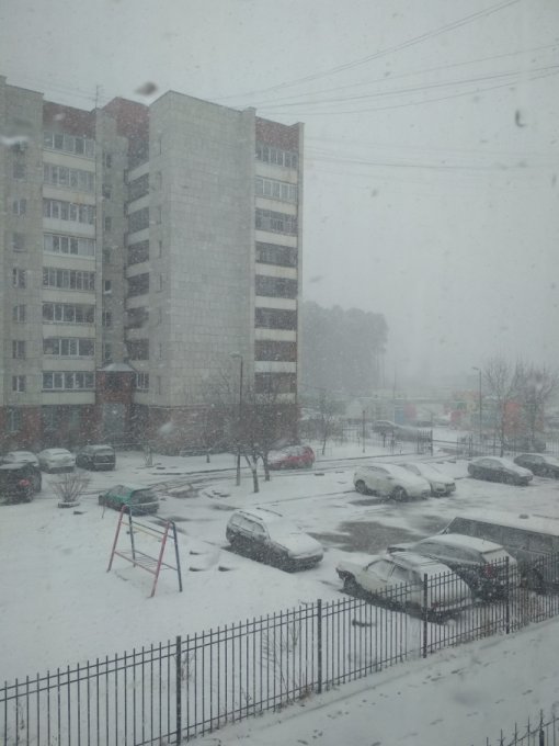 Погода угнетающая серость. Снег метёт весь день. Солнышка сегодня
