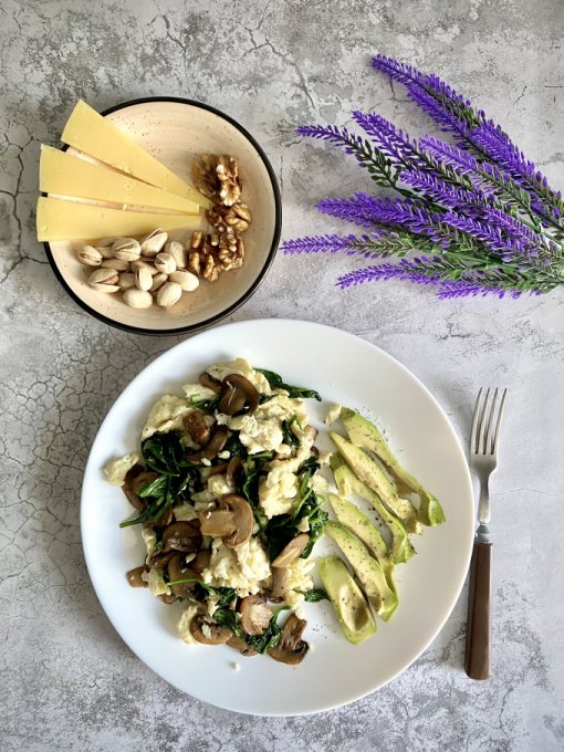 | Скрэмбл с шампиньонами и шпинатом |