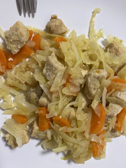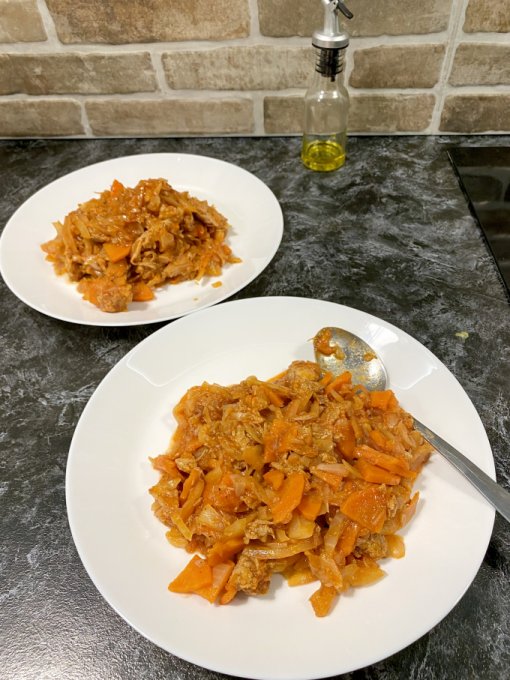 | Свинина с капустой, луком и морковью в духовке |