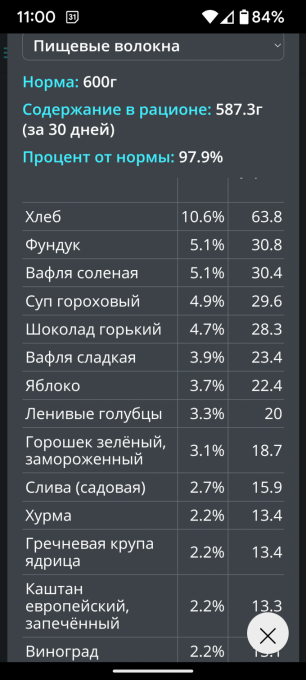 | Итого за день | 2960 | 1696 | 104 | 82 | 138 |