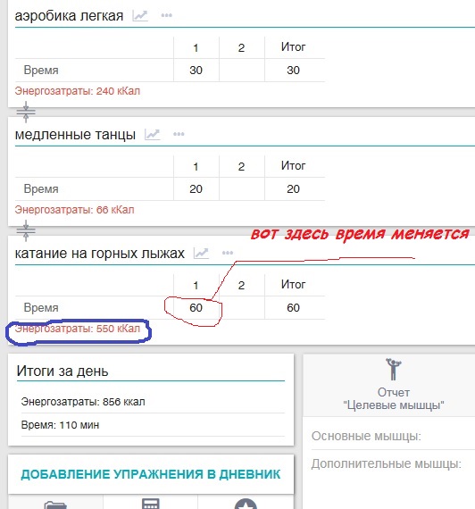 Выбрала катание на горных лыжах, поставила время тренировки, но в