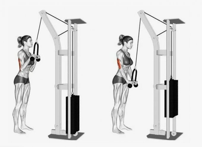 Разгибание рук с верхнего блока — классическое упражнение бодибилдинга и фитнеса. Оно направлено на проработку трицепса и задействует все три его головки.