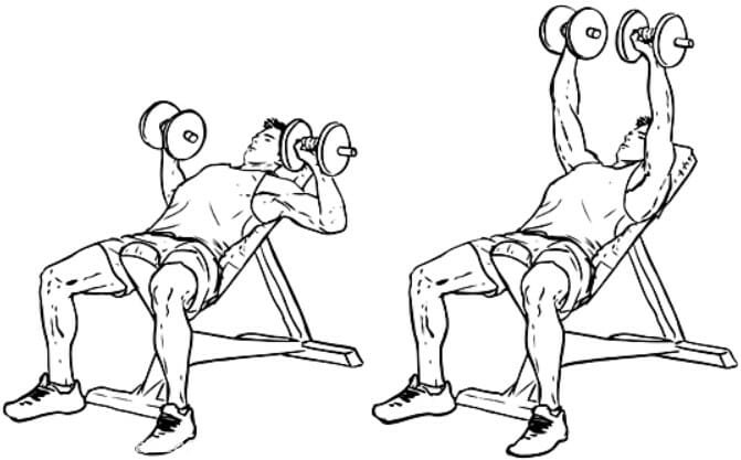 Жим гантелей это базовое упражнение для проработки верхней части грудных мышц. Поскольку упражнение комплексное, в нем работает большое количество мышечных групп, в особенности передние дельтовидные и трицепсы.