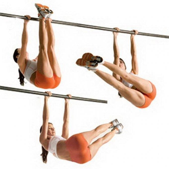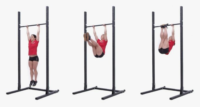Повисните на перекладине на выпрямленных руках. Ноги так же должны быть выпрямлены и не касаться пола;