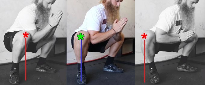 Контролировать положение коленей. Сводить их друг к другу или разводить в разные стороны при приседаниях нельзя.