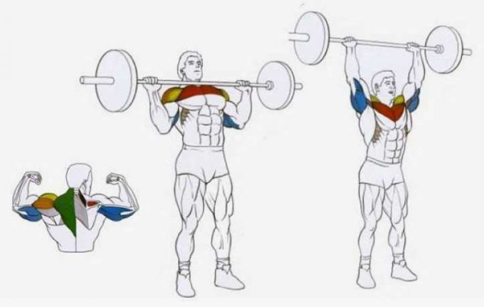 дельтовидных мышц и трицепсы.