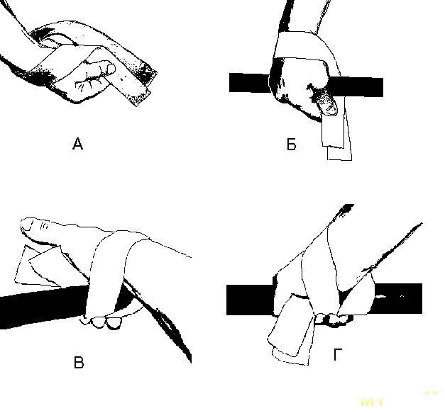 На представленной иллюстрации показан единственно верный вариант намотки лямок для выполнения тяговых упражнений.