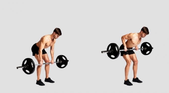 *  Не напрягайте бицепсы, тяните штангу за счёт мышц спины.