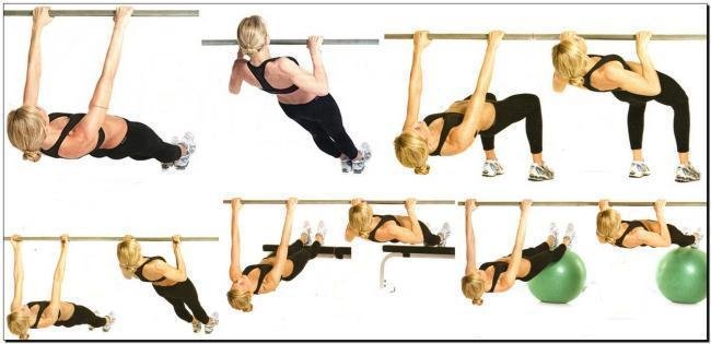 Некоторые упражнения для новичков, которые помогают освоить технику подтягиваний: