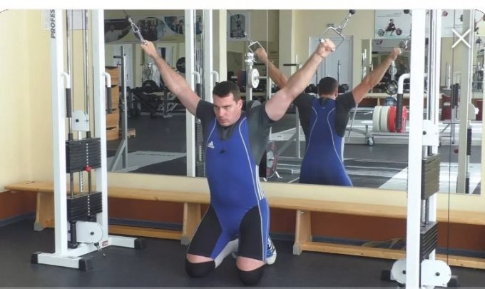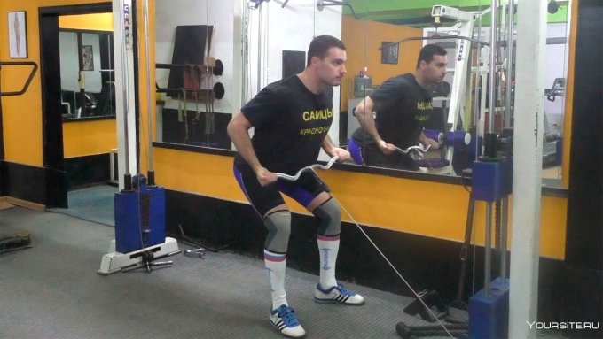 • Выполняется с узкой рукоятью от блочного тренажера.