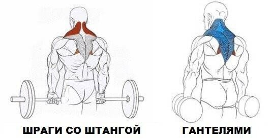 Шраги со штангой стоя — упражнение для тренировки трапециевидных