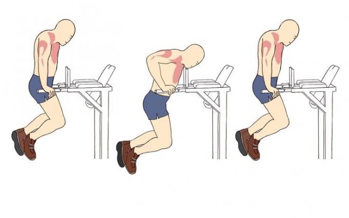 Крепко возьмитесь за брусья, корпус ровный. Шея, спина и бёдра
