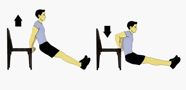 Медленно сгибая локти опускайте тело вниз. Спина при этом должна