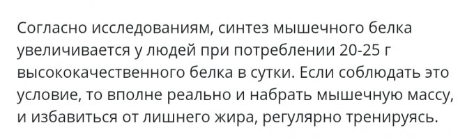 Но и питание играет роль. Если вы регулярно тренируетесь, то