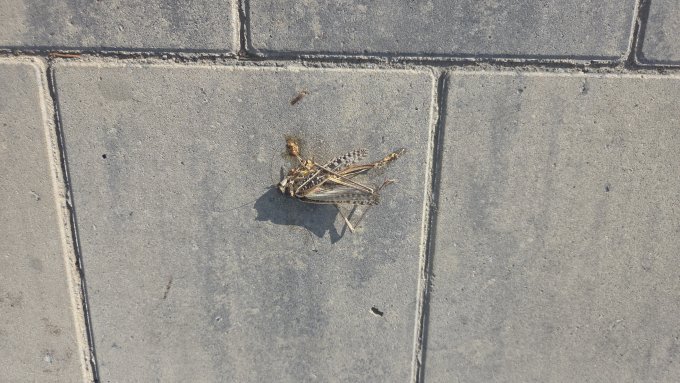 Хотьба быстрым шагом по набережной 4,0км... там увидели погибших огромных саранчищ