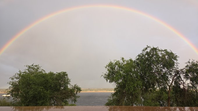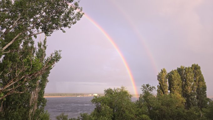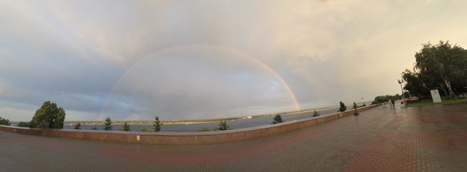 Вчера такой дождь-ливень был, потом радуга двойная, как раз гуляли по набережной.
