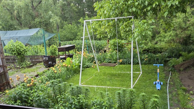 В огороде успела только тыкву высадить в ОГ, ливень загнал в дом.