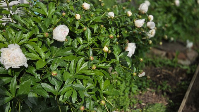 Зацветают: ПИОНЫ ЖАСМИН. И уже первая КЛУБНИЧКА