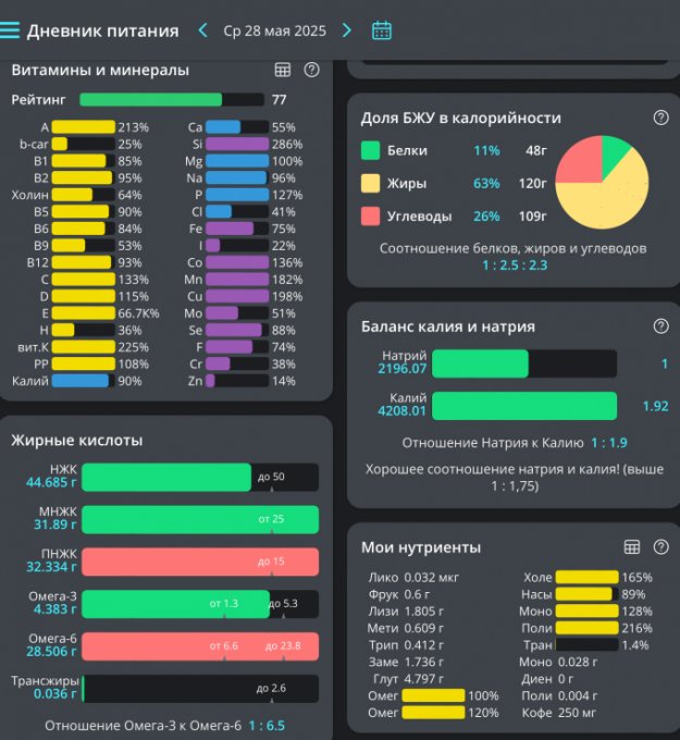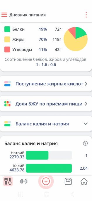 Чтобы увидеть отчеты по питанию и график веса, необходимо войти.