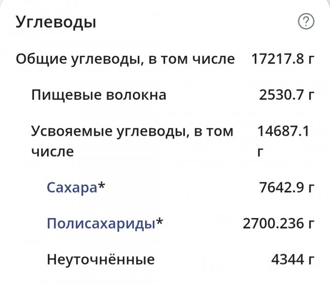 | Кол-во | Калории | Белки | Жиры | Углеводы | |