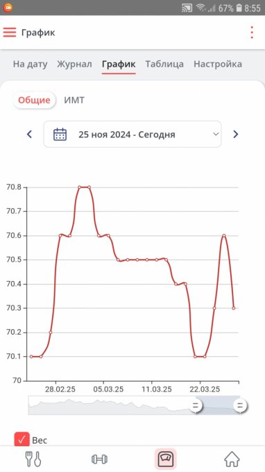Вес встал 68,9кг, ну и хорошо, проходит адаптация тела, к новому телу.