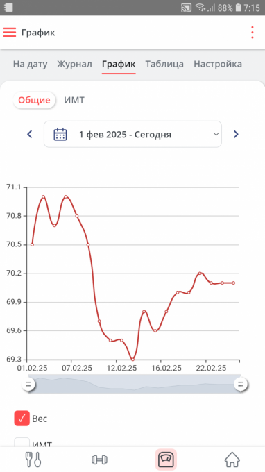 Вес 70,1кг...замер...ну и хорошо...надо к этому весу адаптироваться, пусть подольше таким и будет - не возражаю