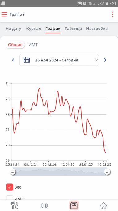 Чтобы увидеть отчеты по питанию и график веса, необходимо войти.