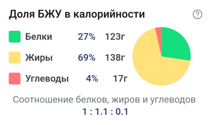 1.Калорийность. Удивилась , что продуктов мало, ожидала длинный список. 2. Жиры. Думала там стопки масла. А по продуктам ничего особенного. Вполне нормально и даже вкусно! Я раньше и полпачки масла сливочного за присест могла употребить и сделать миндальное молоко- полстакана миндаля с водой, и салаты поливала маслом, не жалея. Сразу скажу, я не была на кето. У меня были и будут углеводы. А ваш спор привлёк внимание к теме.