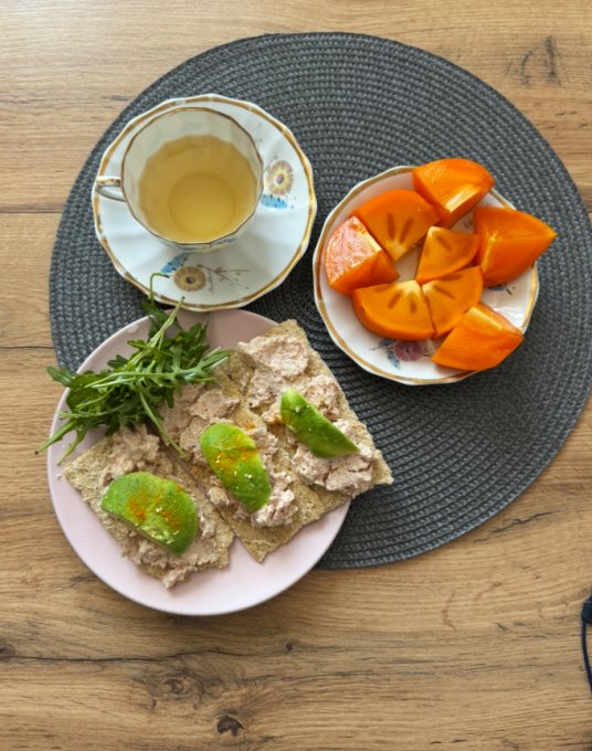 Перекус : Руккола Авокадо Риет из тунца Хурма (...
